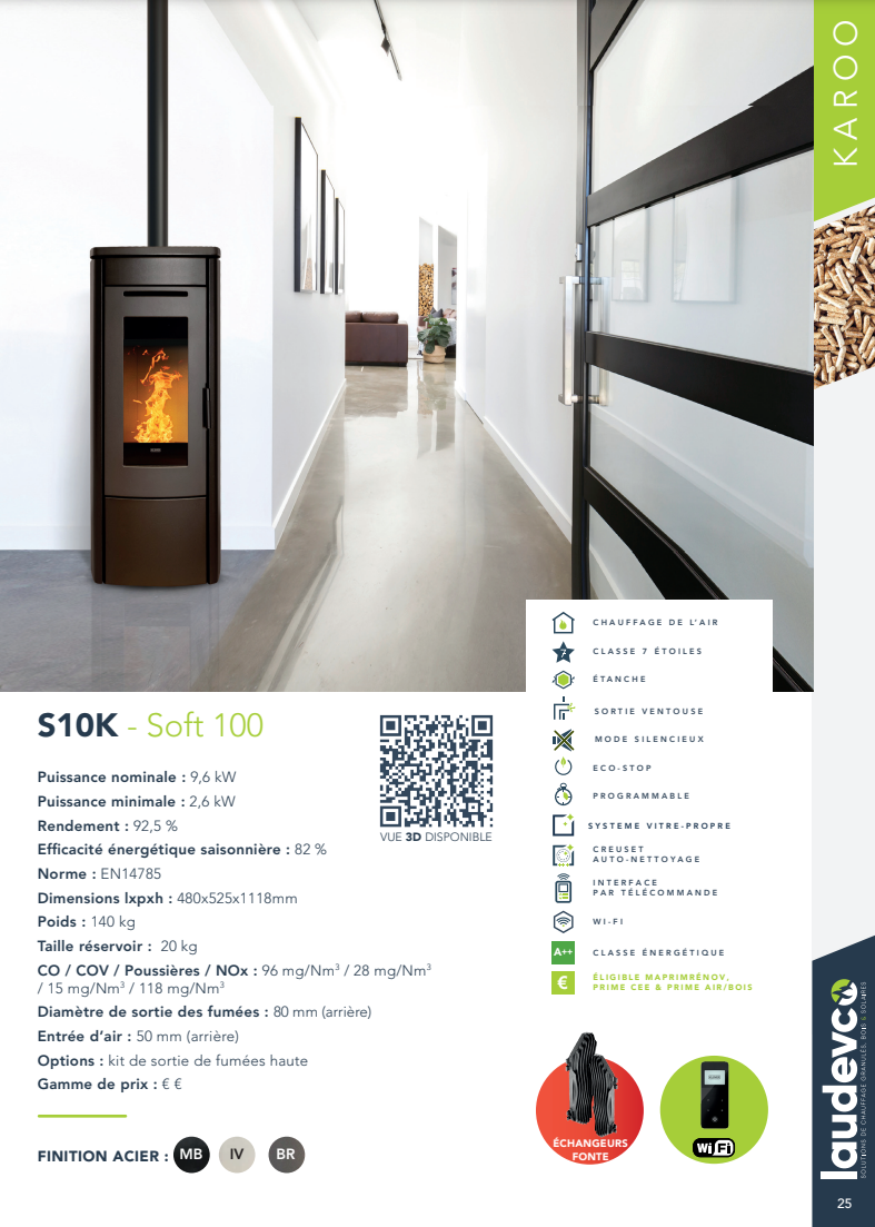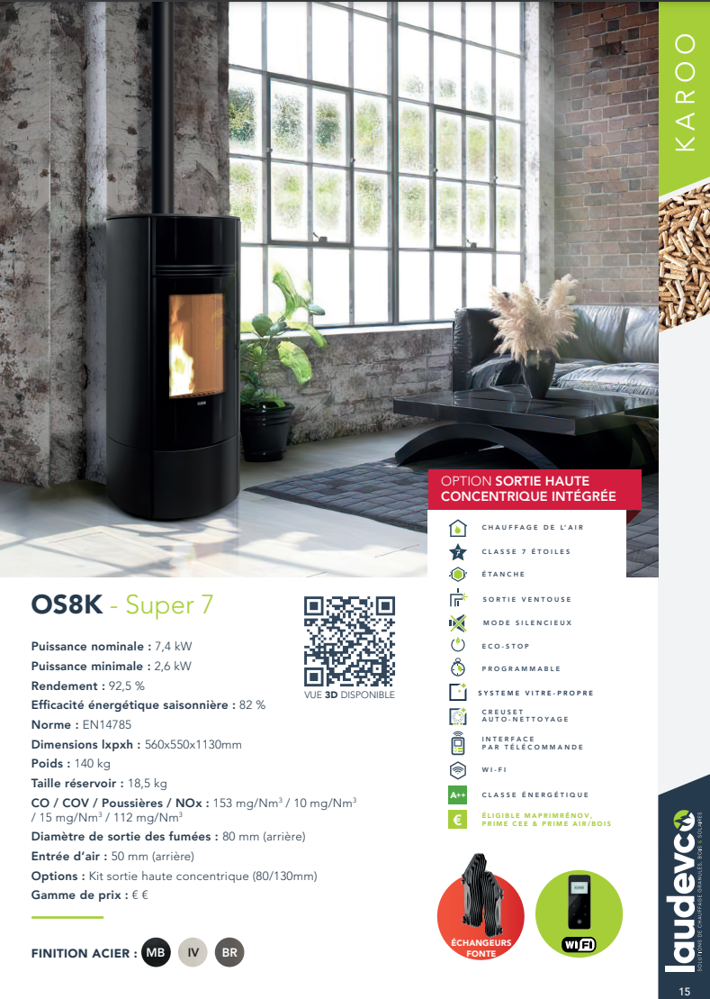 Dotés de mécanismes automatisés, les poêles à granulés permettent un contrôle précis de la température et de la combustion, offrant un chauffage constant et économe en énergie. Leur design compact et leur fonctionnement automatisé les rendent adaptés à une variété d'espaces.