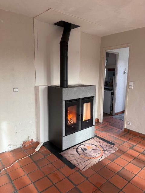 Un poêle à la fois au bois, et à granulés.
